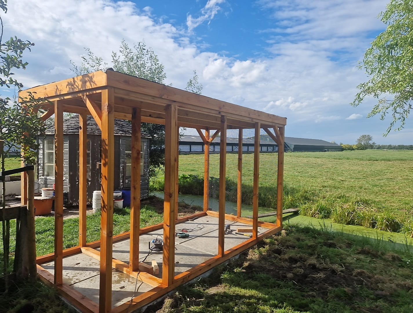 Een schuur ingetimmerd en geïsoleerd.